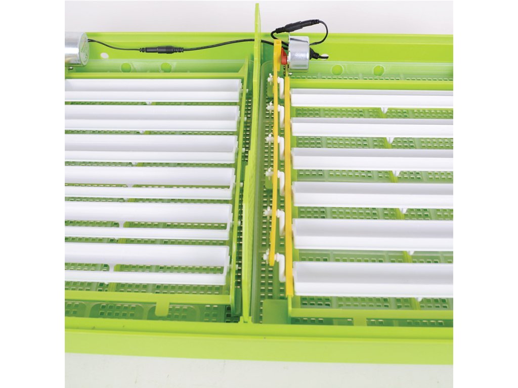 vhodná k liahnutie vodnej a hrabavej hydiny - pre kurčatá, prepelice, kačice, morky, husi a bažanty. S automatickým otáčaním až 60ks slepačích vajec - možnosť aj ručného otáčanie vajec, s alarmom teploty a vlhkosti, s digitálnou reguláciou teploty od 36,6 do 38,3°C, s manuálnou reguláciou vlhkosti, s teplomerom a s vlhkomerom.