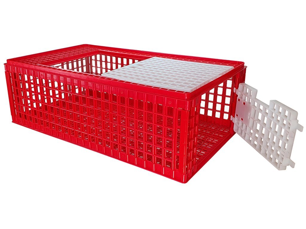 Plastová prepravka na 18-20 ks väčšie hydiny, 2 vstupy do prepravky - horná posuvná a bočné odklápacie dvierka s poistkou, výška 32,5 cm. Ak hľadáte kvalitný prepravný box pre prevoz sliepok, bažantov, prepelíc, perličiek alebo holubov, máme pre vás perfektný tip. Táto prvotriedna, vzdušná prepravka zaistí bezpečný a pohodlný transport Vaši hydiny bez zbytočných komplikácií a zranenia. Praktická posuvné dvierka zhora prepravky Vám umožní ľahkú manipuláciu s hydinou. Výborné je, že prepravky na živú hydinu môžete vzájomne stohovať. Prepravný box je vyrobený z veľmi odolného plastu, ktorý sa ľahko čistí a udržuje, a tak Vám bude slúžiť niekoľko rokov. Rozmery prepravky: 95,5x57x32,5cm